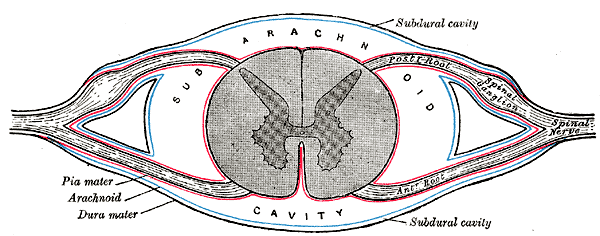 Diagrammatic transverse section of the medulla spinalis and its membranes. Click to enlarge.