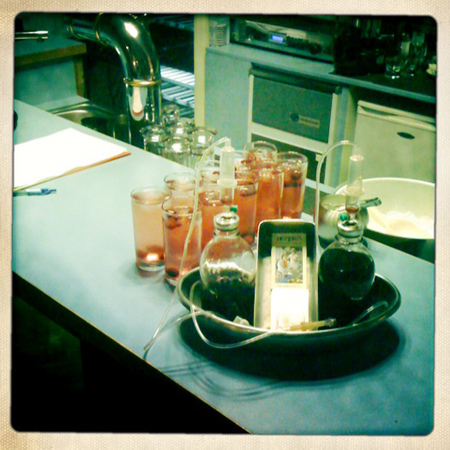 The bar at Hospitalis with drinks and dressings. Photo by Øystein Horgmo © All rights reserved.