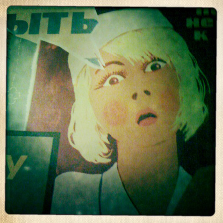 A Russian nurse on a mural in the toilet at Hospitalis. Photo by Øystein Horgmo © All rights reserved.