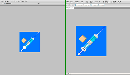 300x300 pixels image viewed on 1920x1200 screen (left) and 1280x768 screen (right). Relative sizes.